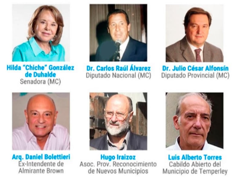 La nómina se completa con Hugo Iraizos, de la Asociación Provincial para el Reconocimiento de Nuevos Municipios, y Luis Alberto Torres, de Cabildo Abierto del Municipio de Temperley.