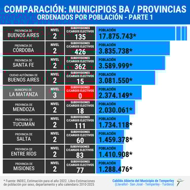 La estrella de mayor magnitud en el firmamento de los municipios bonaerenses es La Matanza, que es el 6to. gobierno del país en población, solo superado por el gobierno de la Ciudad de Buenos Aires, los gobiernos de las provincias de Buenos Aires, Córdoba y Santa Fe, y por el gobierno nacional.