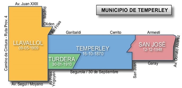El 3 de Octubre de 1997, el Municipio de Lomas de Zamora y la Provincia de Buenos Aires asumían frente a la comunidad el compromiso de crear un nuevo municipio integrando las localidades de Llavallol, San José, Temperley y Turdera. En la misma reunión se decidió por unanimidad el nombre de Temperley para el nuevo municipio.