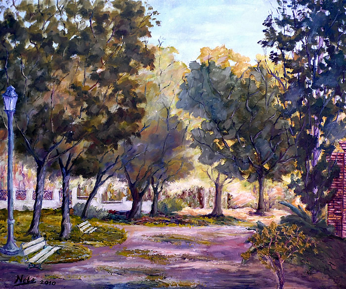 Su gusto por la pintura se concreta por primera vez en 1987, año en el cual, sobre madera, realiza 3 obras con paisajes en distintas estaciones del año. En lo sucesivo, predominan los motivos paisajísticos aunque también realiza réplicas de telas de grandes artistas en su etapa de pintor autodidacta. No obstante, es desde 1992 (año en el que ingresa al Taller de Arte Bijou) que muestra una continuidad en su producción.